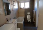 Prvé poschodie / bytová jednotka : chodba, kuchyňa so špajzou, priestranná obývacia izba so vstupom na verandu, izba, WC, kúpeľňa s vaňou