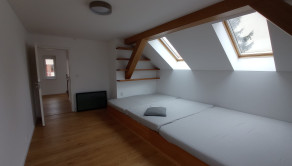 Druhé poschodie / bytová jednotka : chodba so schodiskom, obývacia izba s počítačovou pracovňou a vstupom na terasu, izba, kuchyňa, WC, kúpeľňa so sprchovacím kútom