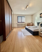 · priestranná obývacia izba / spálňa s pieckou na tuhé palivo, ktorá vytvára príjemnú atmosféru počas zimných večerov