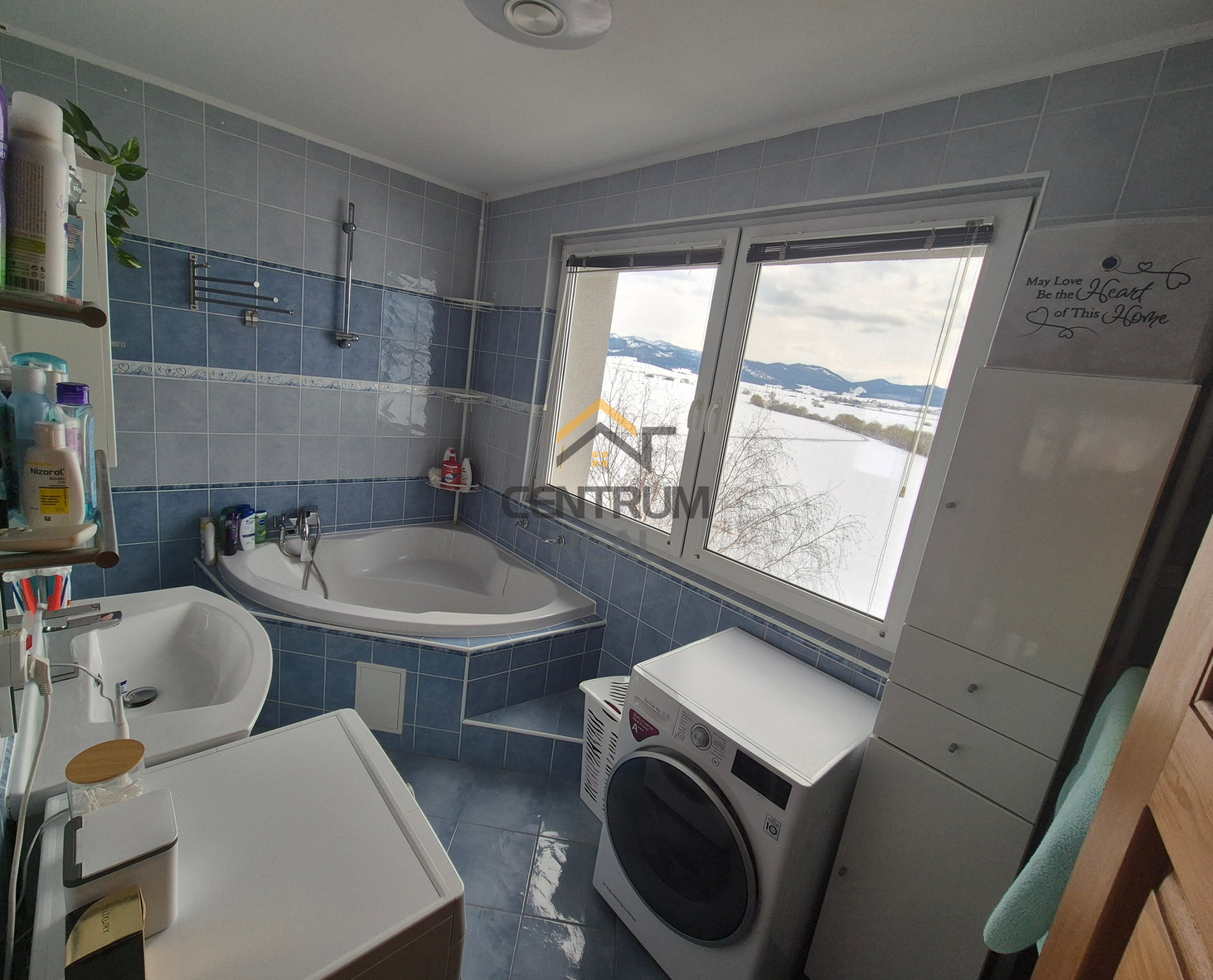 Výhodou je priestranná kúpeľňa s vaňou, sprchovacím kútom a samostatným WC s umývadlom
